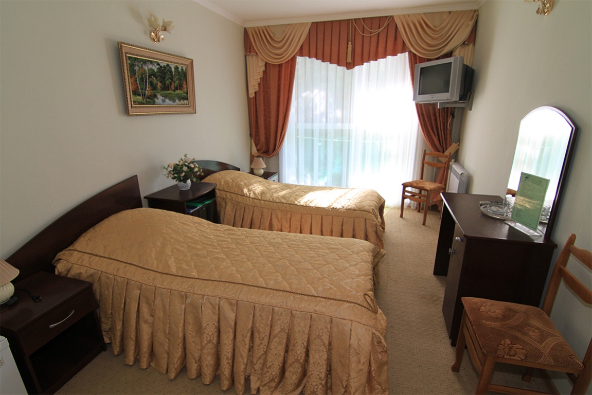 Площадь номера - 20 кв.м. 2 осн. места. 1 доп. место. Балкон. Мебель: вешалка, зеркало, кровати односпальные, прикроватные тумбочки, столик туалетный, стулья, шкаф. Оборудование: сейф, телевизор, телефон, холодильник, чайный набор посуды, электрочайник. Санузел: с душем, туалетные принадлежности, фен. Сервис: Wi-Fi бесплатно, смена полотенец (1 раз в 7 дней), смена постельного белья (1 раз в 7 дней), уборка номера (ежедневно), услуги внутренней телефонной связи.